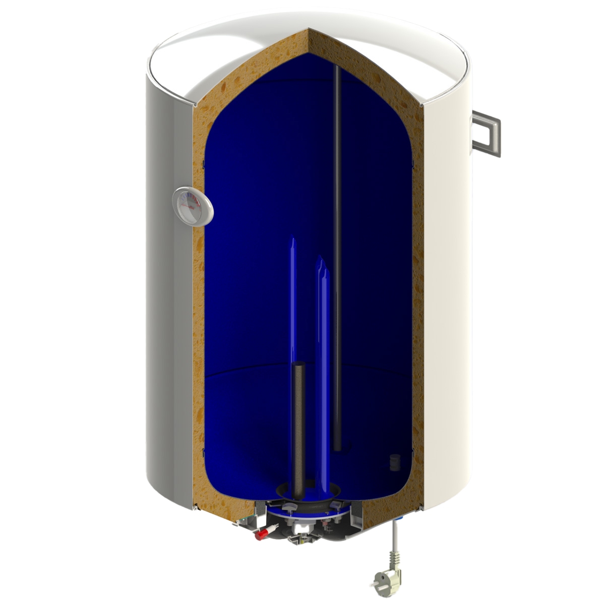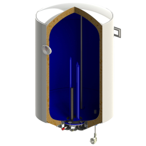 Classic storage water heaters, vertical wall mounting with wet heating element, dial thermometer and light indicator. Water heaters have protection against overheating and dry heating.