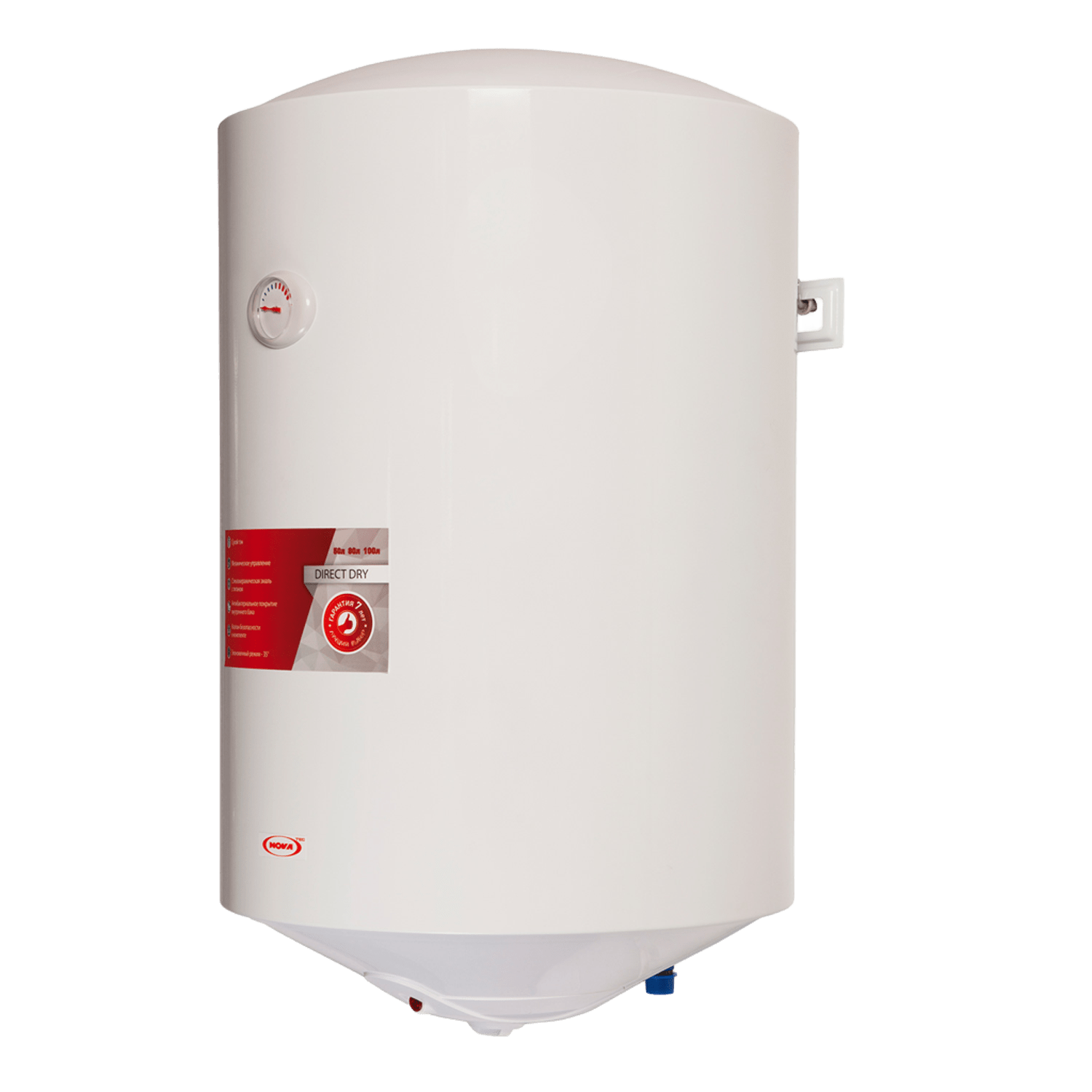 NOVA TEC Standard Plus is an improved line of storage water heaters that combines classic reliability with increased ease of use. The models are equipped with an external mechanical temperature regulator, which allows you to easily and quickly set the desired temperature without removing the protective cover. The heating element power has been increased to 1.8 kW to ensure rapid heating. The internal tank is reliably protected by two-layer titanium enamel and has improved thermal insulation.