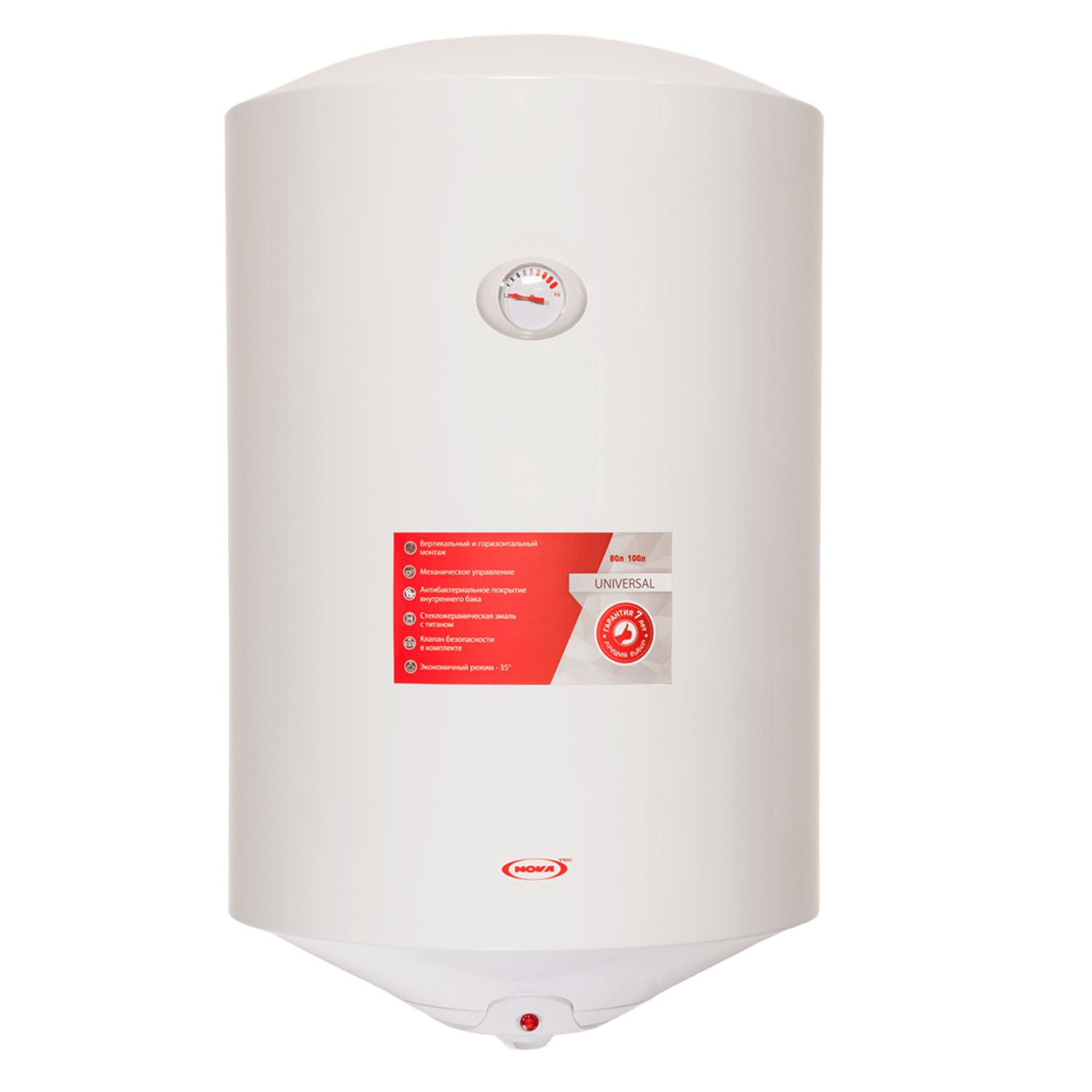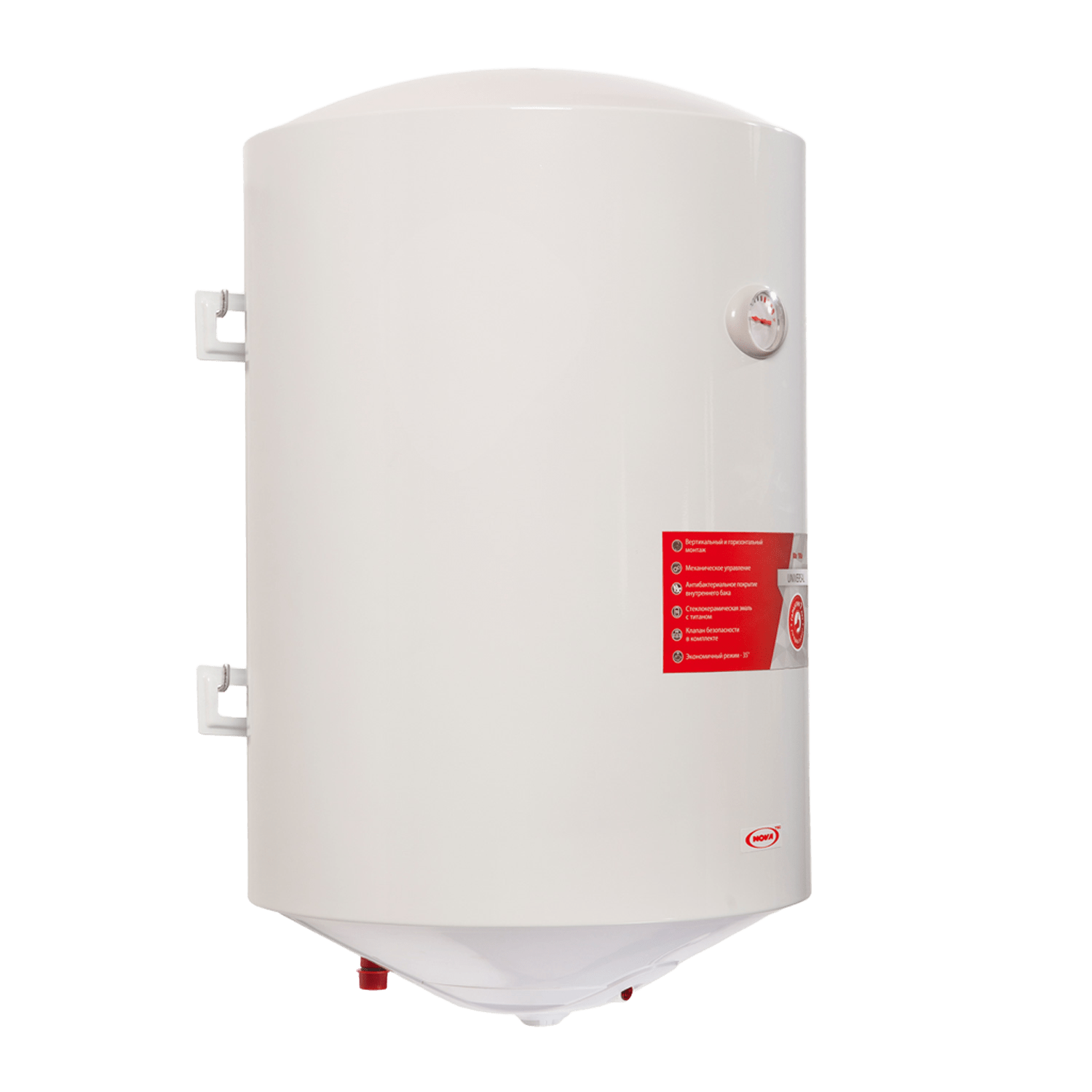 The NOVA TEC Universal series is the perfect combination of quality and installation flexibility. These storage water heaters offer the possibility of universal installation (both vertically and horizontally), which solves the problem of limited space. The models have an external temperature regulator and a heating indicator for convenient control. The inner tank is coated with titanium enamel with antibacterial properties, which ensures high hygiene of hot water.