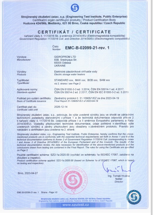 Італійський мідний ТЕН стійкий до корозії, працює при нестабільній напрузі, запобігає перегріву та регулює тиск у бойлері.
